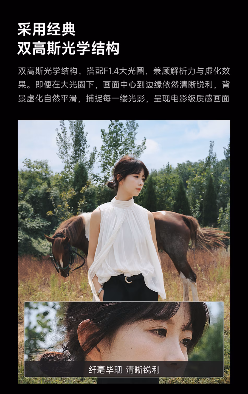 凭借对称镜片设计,自然抵消像差,优化光路路径,并兼容大光圈,使中心与边缘画质均衡清晰。结合低色散镜片与多层镀膜技术,即便在F1.4大光圈下,也能呈现锐利边缘与均匀光线分布,画面整体清晰自然