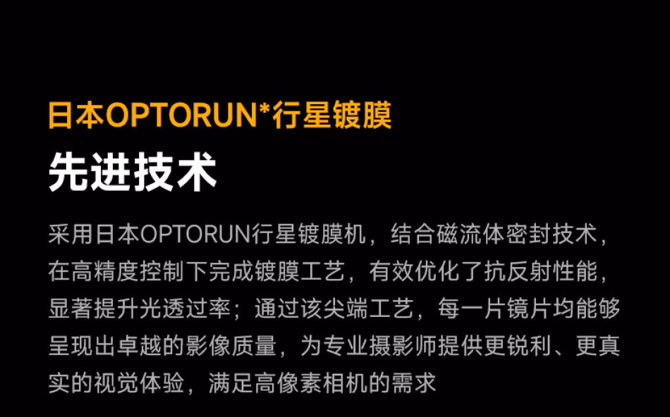 配备2枚ASPH非球面镜片,搭载日本OPTORUN行星镀膜技术