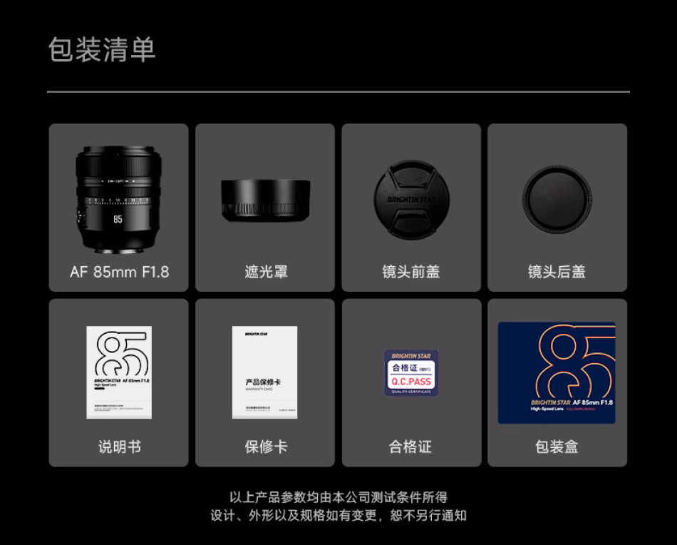 BrightnStar 星曜 星耀 AF 85mm F1.8 全画幅 自动对焦镜头 E卡口 Z卡口