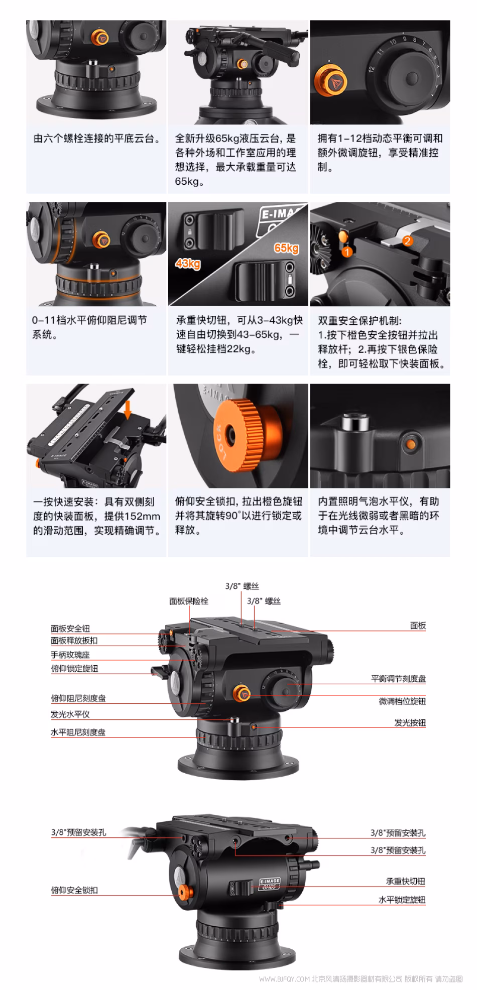 意美捷 E-image GH65 with 6-Bolt Flat Base 六个螺栓连接的GH65平底 65kg承重云台
