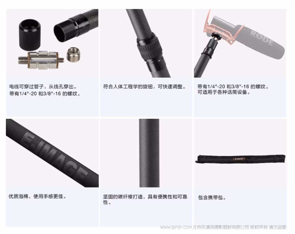 意美捷 E-image BC12 碳纤维可伸缩式话筒杆 展开长度350cm 收缩长度90cm