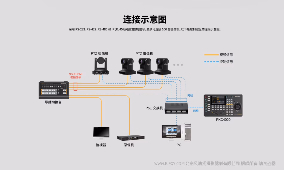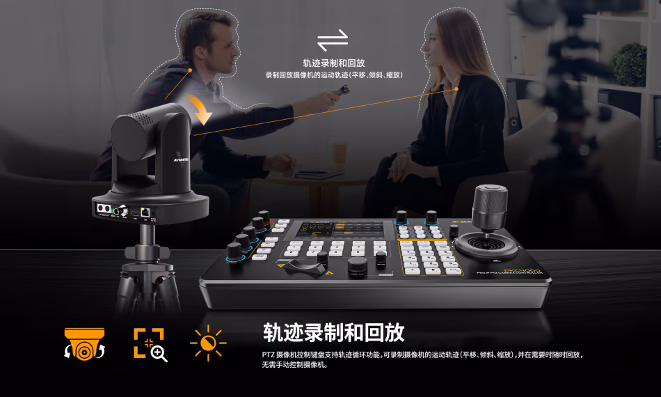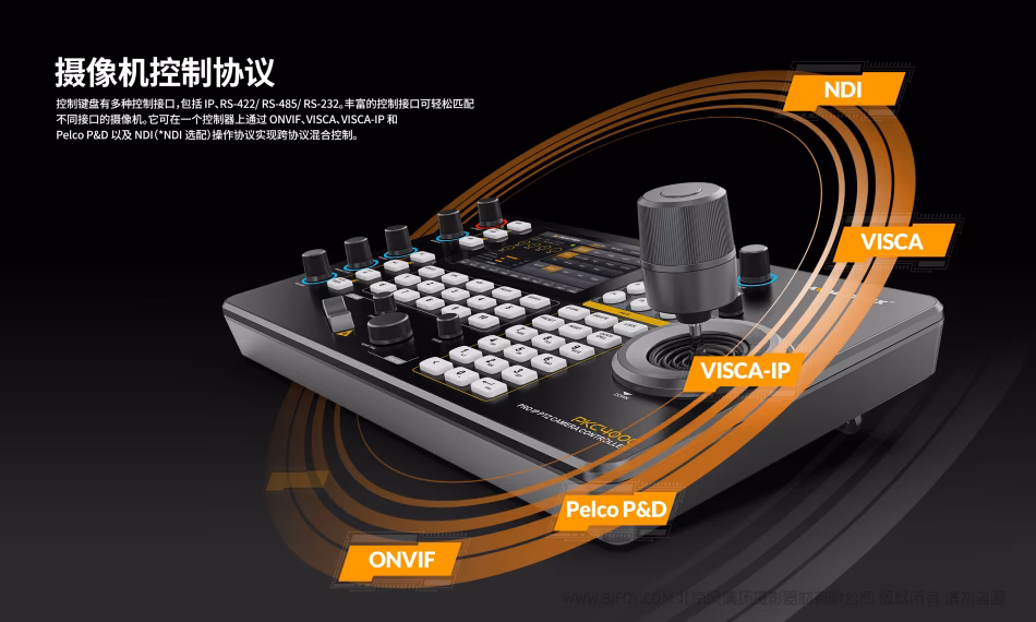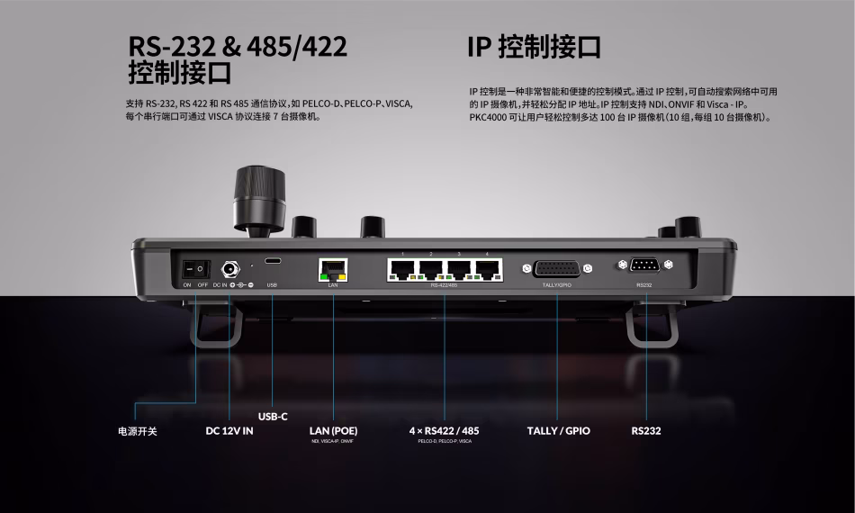 *6 个用户可指定按键,用于快速访问功能 *快速控制曝光、光圈、聚焦、摇镜头、俯仰等功能 *支持 PoE 和 12V 直流电源