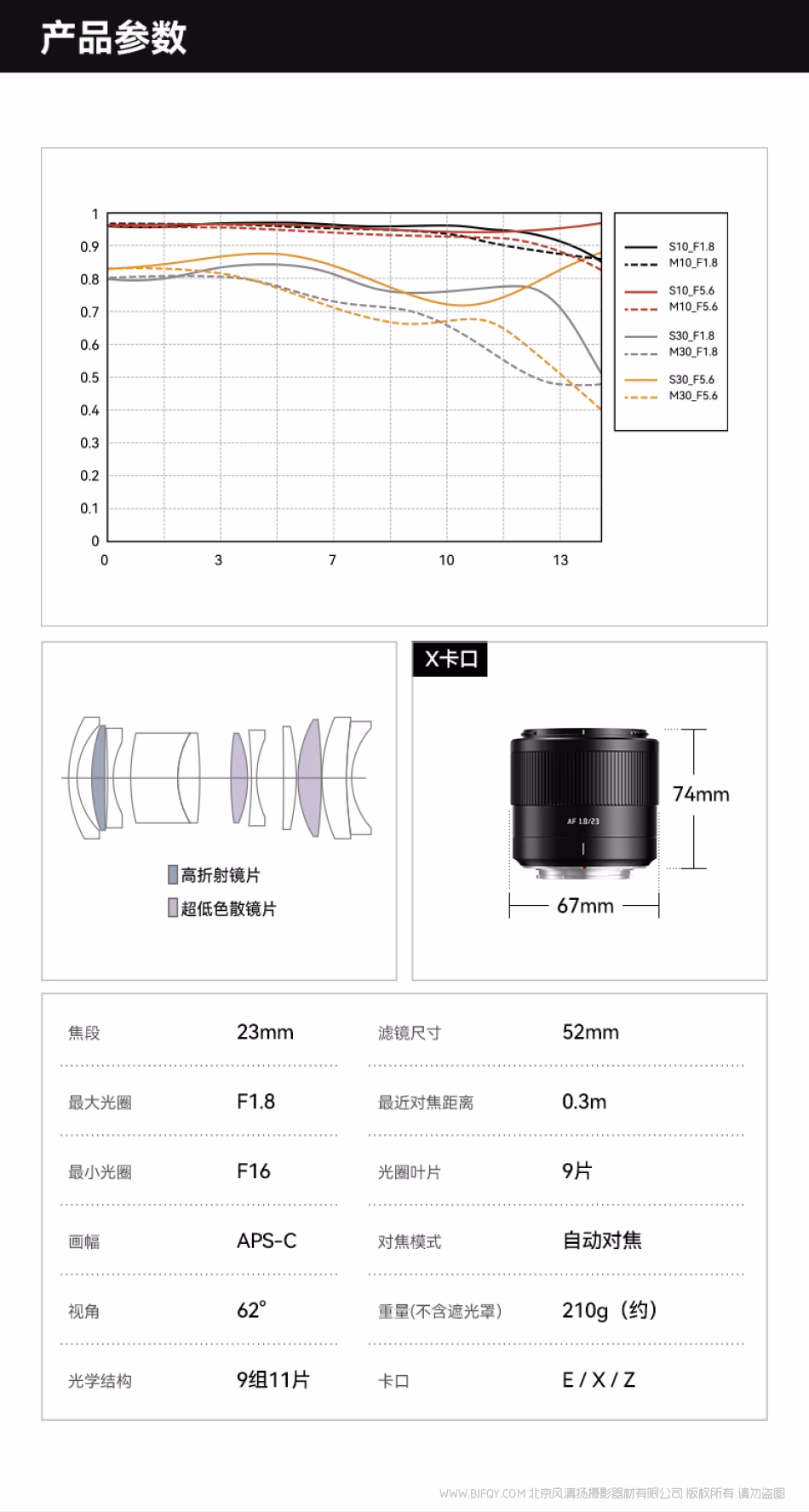 | 焦段 | 23mm | 滤镜尺寸 | 52mm |