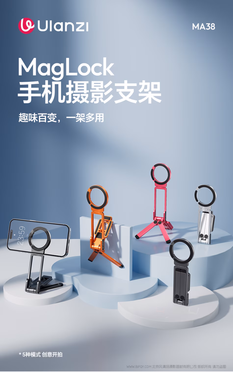 Ulanzi 优篮子 MA38 MagLock手机摄影支架 多色可选 漆光橘 小洋红 星耀银 曜石灰 T189 T190 T191 T163