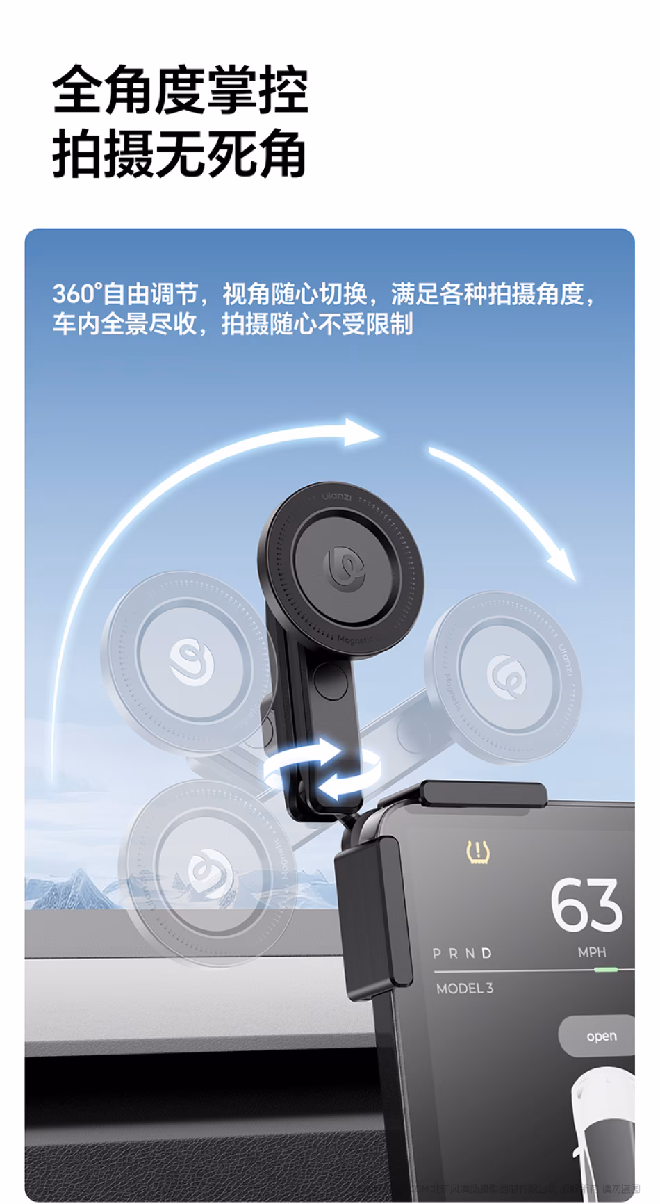 优篮子 Ulanzi SK28 特斯拉屏幕手机拍摄支架(磁吸款) 角度随意调,轻松出片 S012