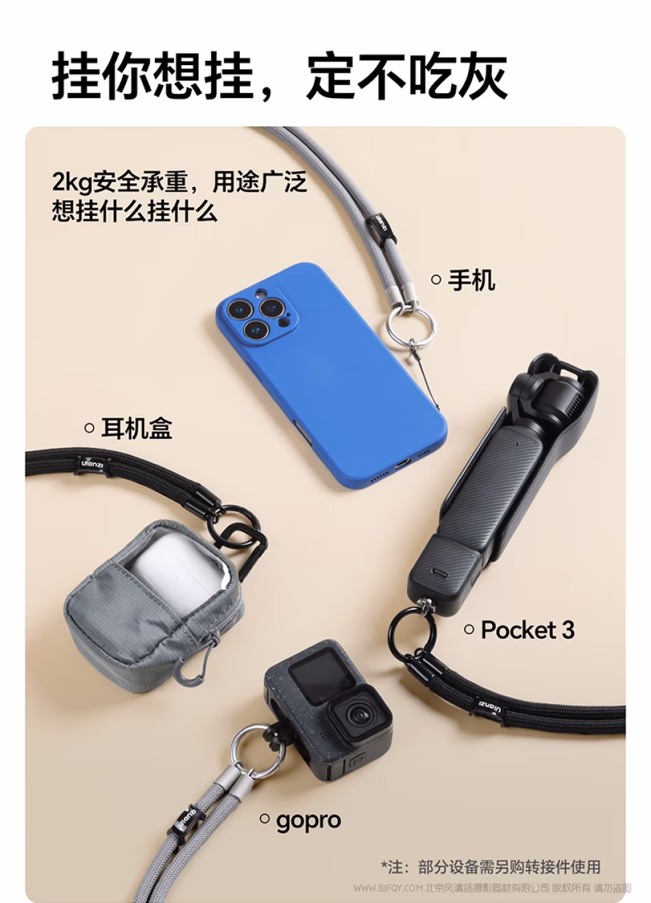 优篮子 Ulanzi AS01 Action挂绳-黑色B213 灰色B215 Action运动相机挂绳 解放双手,轻快出行