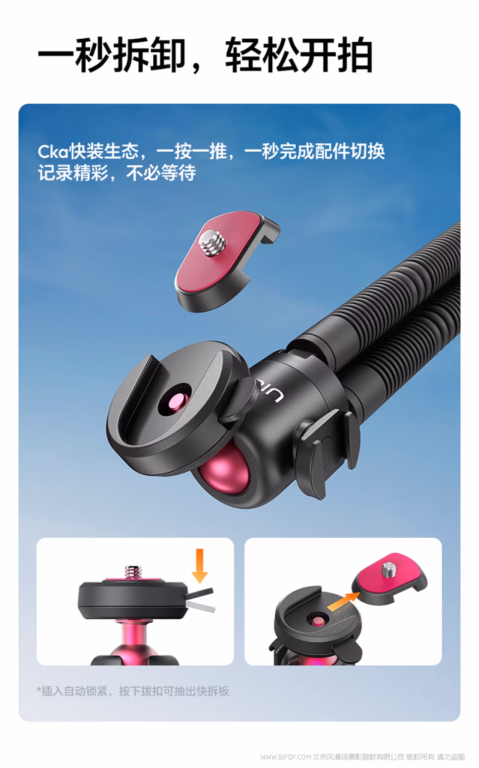 一秒拆卸,轻松开拒 Cka快装生态,一按一推,一秒完成配件切换 记录精彩,不必等待