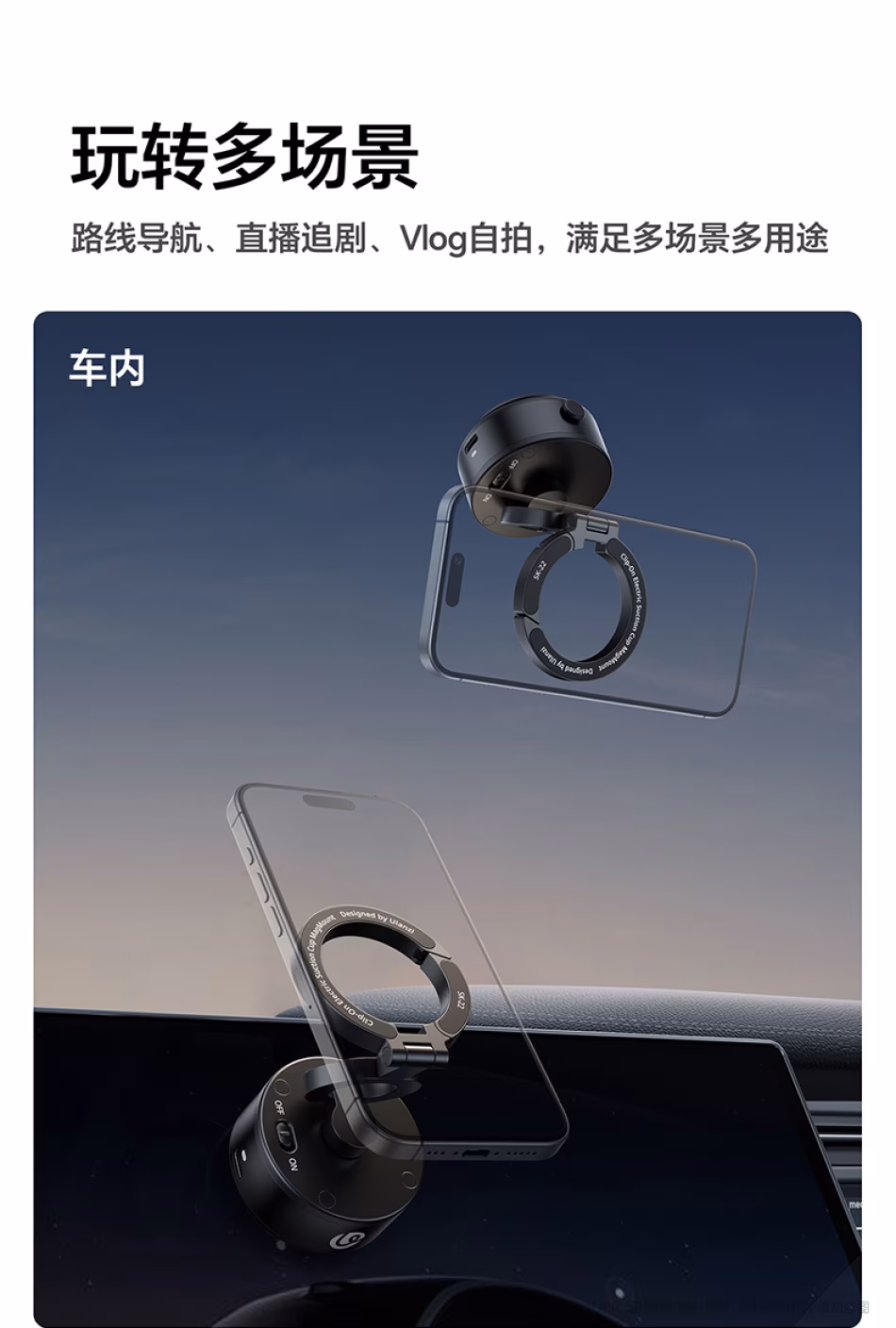 优篮子 Ulanzi SK-22 手机电动吸盘支架 M096A 能挂能吸,手机好搭子