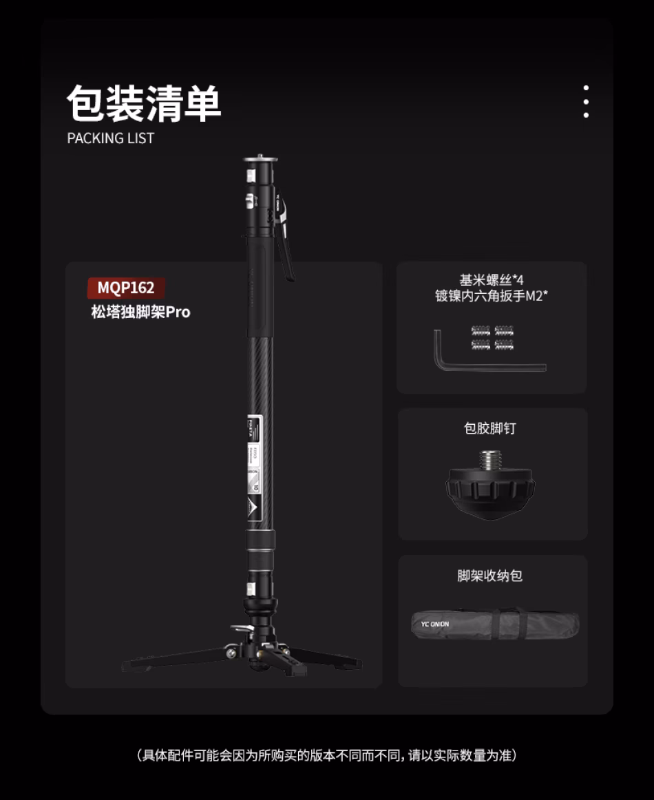 YC ONION 洋葱工厂 松塔独脚架PRO MQP162 Pineta Pro Carbon Fiber Monopod  with Pedal Base